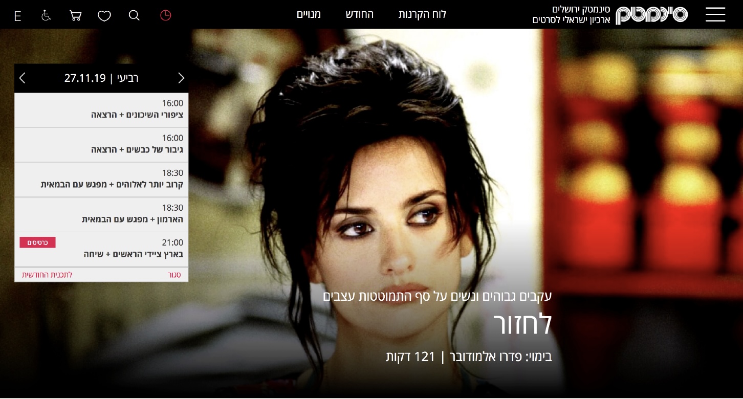 The Jerusalem Cinematheque was established in 1974 by Lia and Vim van Leer and was first housed in Agron House. The Cinematheque sees itself as a leading platform for the promotion of local cinema.